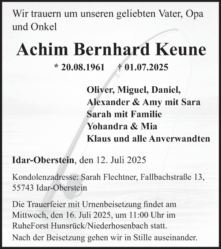 Hier finden Sie alle Traueranzeigen aus der Zeitung, die bisher für Achim Bernhard Keune erschienen sind. Weitere Traueranzeigen, die in der Zeitung erscheinen, werden hier ebenfalls aufgelistet