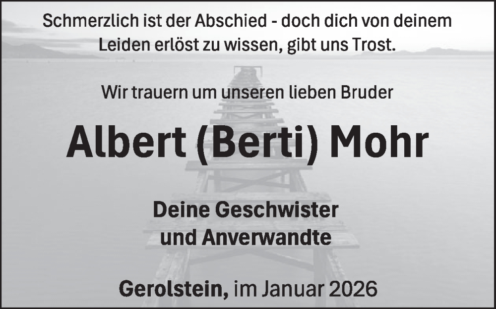 Hier finden Sie alle Traueranzeigen aus der Zeitung, die bisher für Albert Mohr erschienen sind. Weitere Traueranzeigen, die in der Zeitung erscheinen, werden hier ebenfalls aufgelistet
