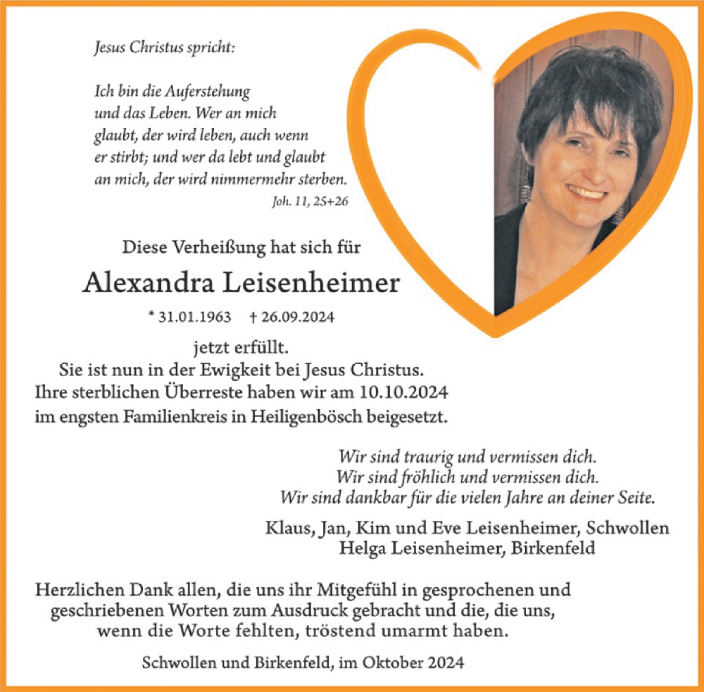 Hier finden Sie alle Traueranzeigen aus der Zeitung, die bisher für Alexandra Leisenheimer erschienen sind. Weitere Traueranzeigen, die in der Zeitung erscheinen, werden hier ebenfalls aufgelistet