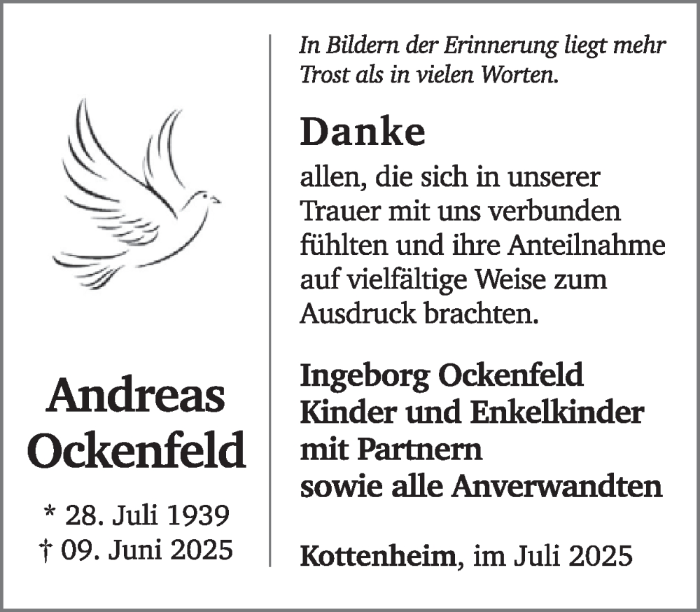Hier finden Sie alle Traueranzeigen aus der Zeitung, die bisher für Andreas Ockenfeld erschienen sind. Weitere Traueranzeigen, die in der Zeitung erscheinen, werden hier ebenfalls aufgelistet