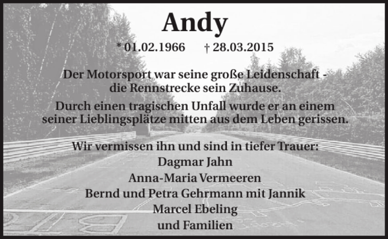 Hier finden Sie alle Traueranzeigen aus der Zeitung, die bisher für Andy erschienen sind. Weitere Traueranzeigen, die in der Zeitung erscheinen, werden hier ebenfalls aufgelistet