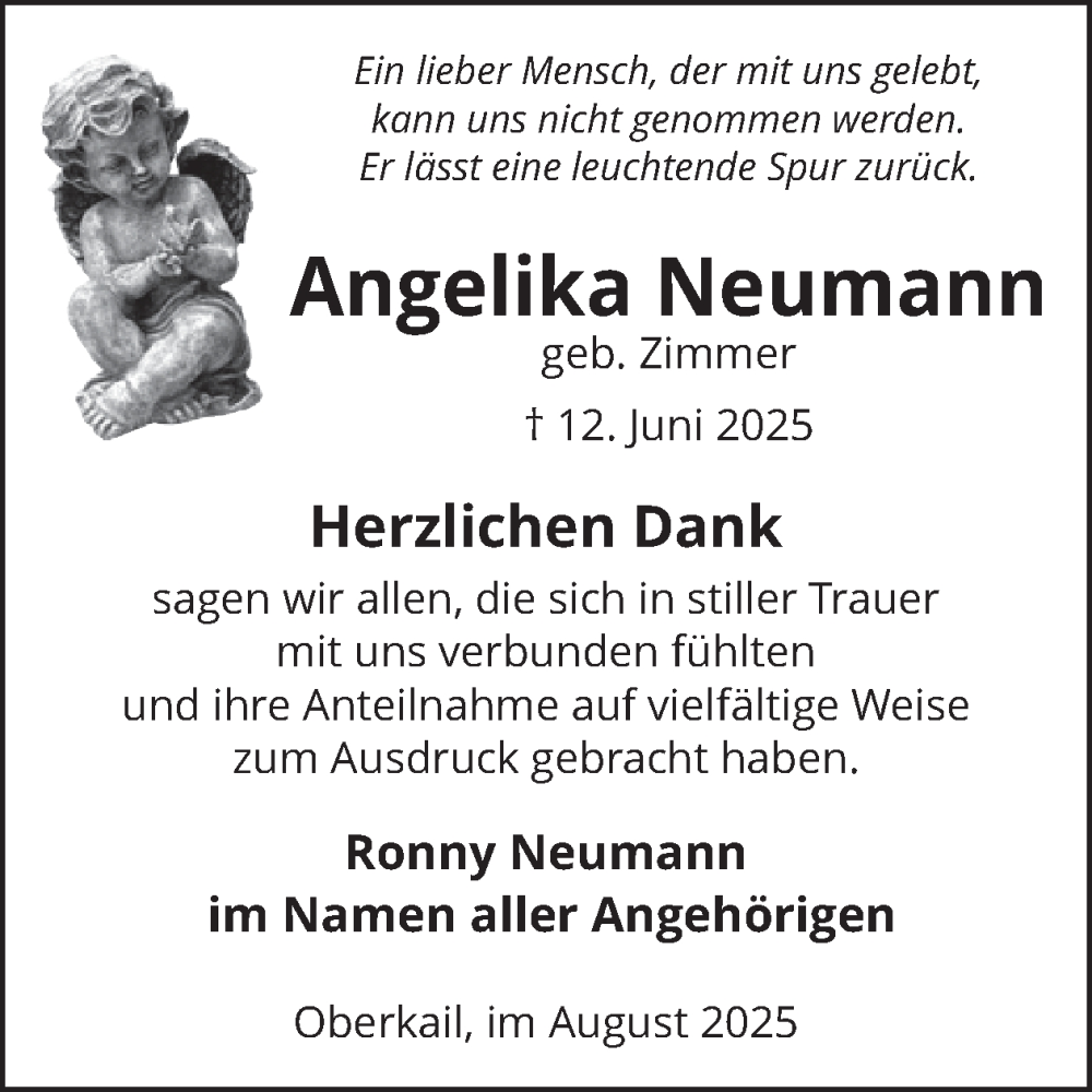 Hier finden Sie alle Traueranzeigen aus der Zeitung, die bisher für Angelika Neumann erschienen sind. Weitere Traueranzeigen, die in der Zeitung erscheinen, werden hier ebenfalls aufgelistet