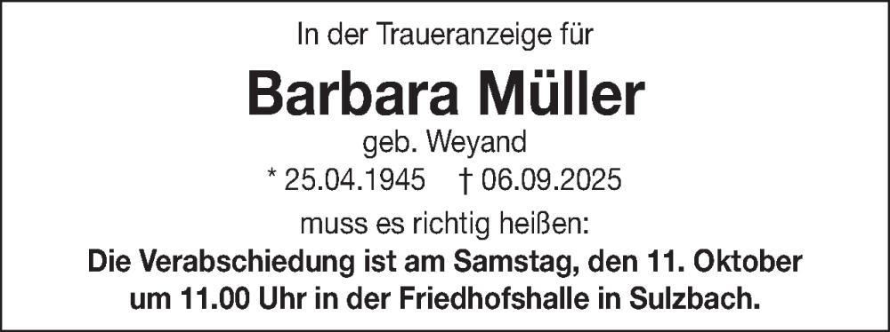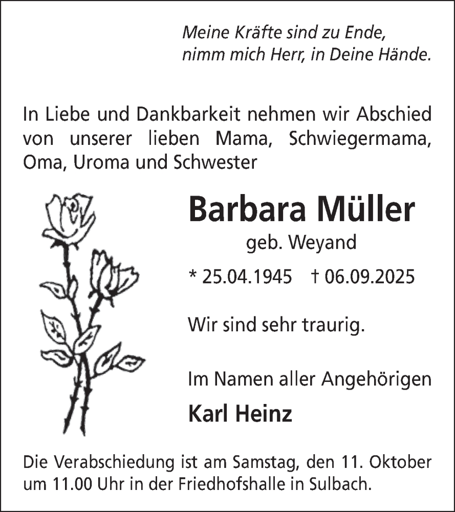 Hier finden Sie alle Traueranzeigen aus der Zeitung, die bisher für Barbara Müller erschienen sind. Weitere Traueranzeigen, die in der Zeitung erscheinen, werden hier ebenfalls aufgelistet