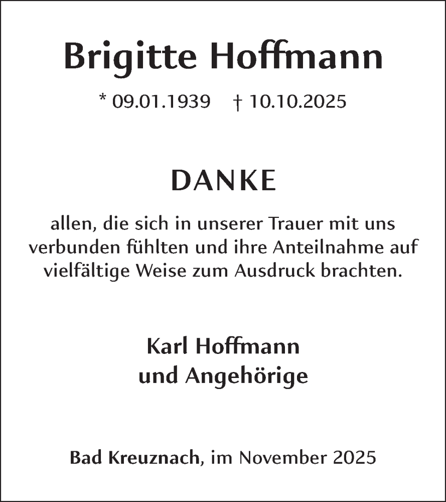Hier finden Sie alle Traueranzeigen aus der Zeitung, die bisher für Brigitte Hoffmann erschienen sind. Weitere Traueranzeigen, die in der Zeitung erscheinen, werden hier ebenfalls aufgelistet