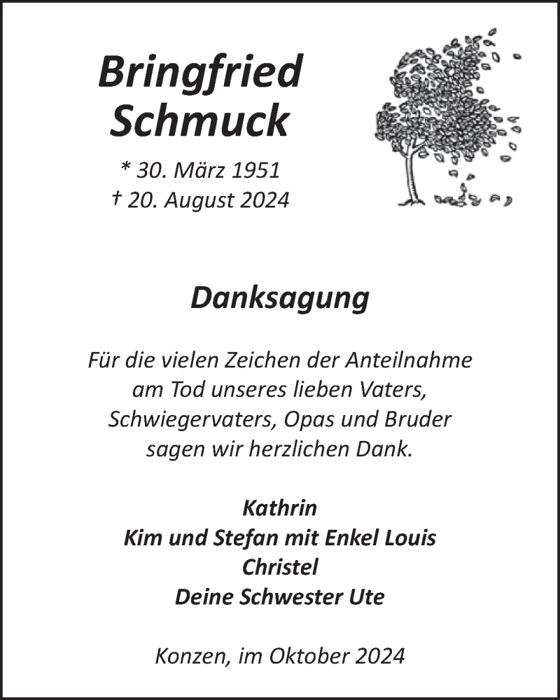 Hier finden Sie alle Traueranzeigen aus der Zeitung, die bisher für Bringfried Schmuck erschienen sind. Weitere Traueranzeigen, die in der Zeitung erscheinen, werden hier ebenfalls aufgelistet