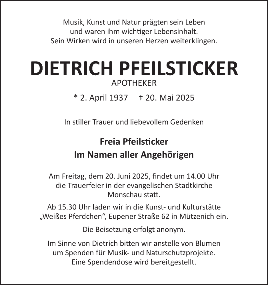 Hier finden Sie alle Traueranzeigen aus der Zeitung, die bisher für Dietrich Pfeilsticker erschienen sind. Weitere Traueranzeigen, die in der Zeitung erscheinen, werden hier ebenfalls aufgelistet