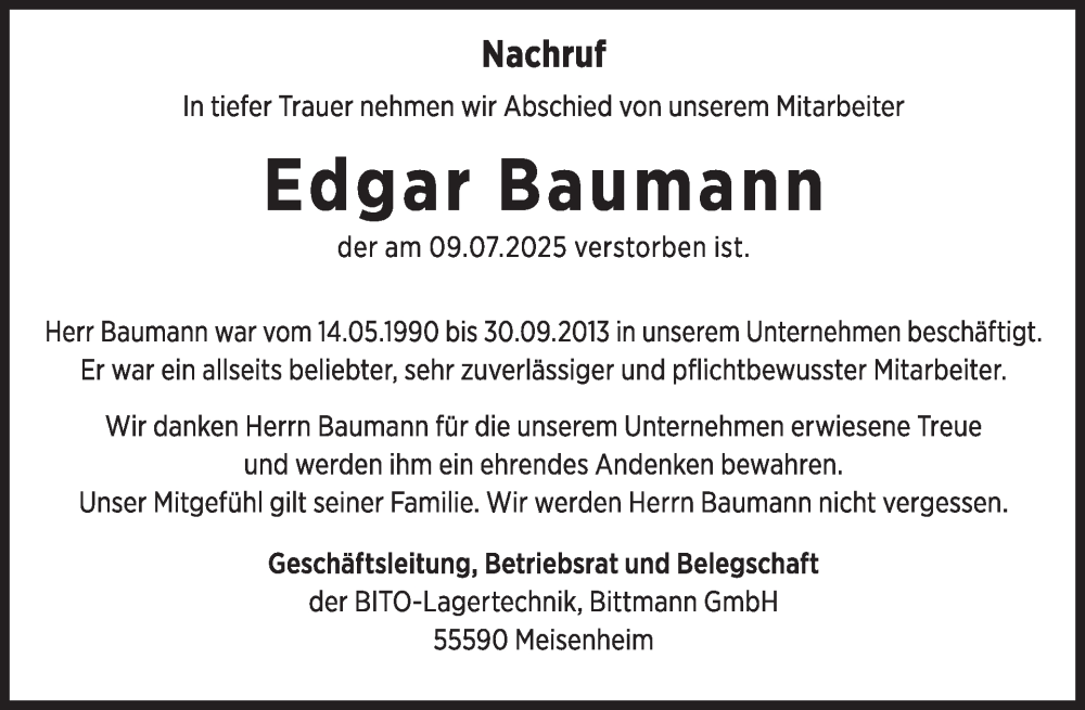 Hier finden Sie alle Traueranzeigen aus der Zeitung, die bisher für Edgar Baumann erschienen sind. Weitere Traueranzeigen, die in der Zeitung erscheinen, werden hier ebenfalls aufgelistet