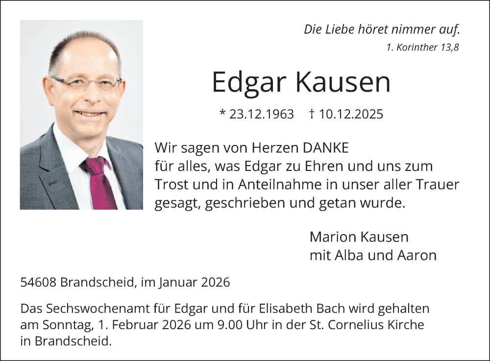 Hier finden Sie alle Traueranzeigen aus der Zeitung, die bisher für Edgar Kausen erschienen sind. Weitere Traueranzeigen, die in der Zeitung erscheinen, werden hier ebenfalls aufgelistet
