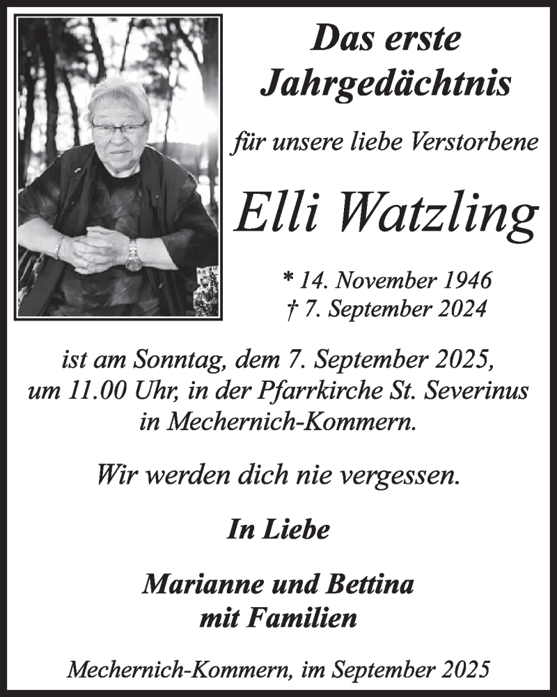Hier finden Sie alle Traueranzeigen aus der Zeitung, die bisher für Elli Watzling erschienen sind. Weitere Traueranzeigen, die in der Zeitung erscheinen, werden hier ebenfalls aufgelistet