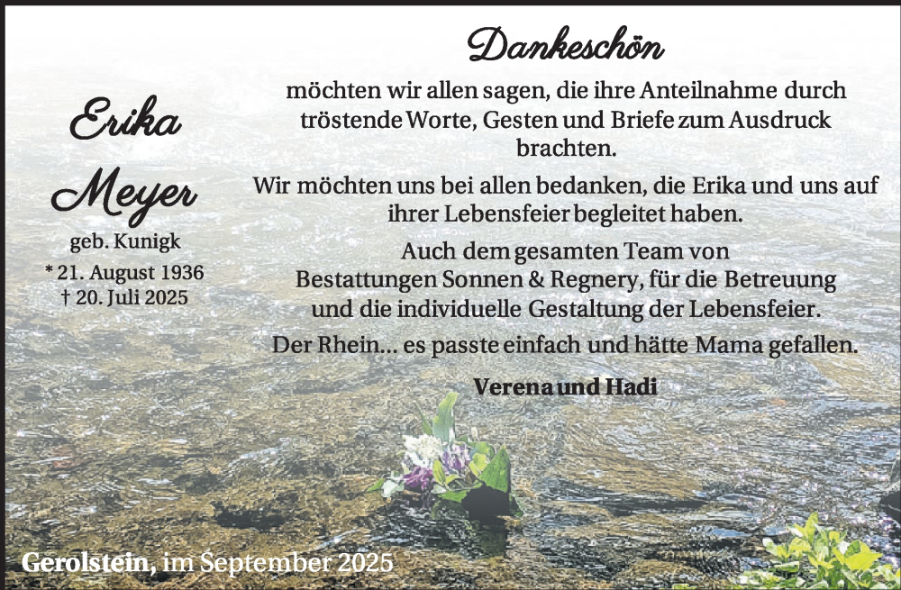 Hier finden Sie alle Traueranzeigen aus der Zeitung, die bisher für Erika Meier erschienen sind. Weitere Traueranzeigen, die in der Zeitung erscheinen, werden hier ebenfalls aufgelistet