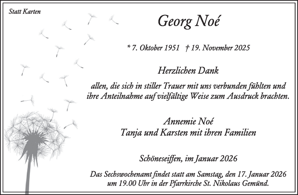 Hier finden Sie alle Traueranzeigen aus der Zeitung, die bisher für Georg Noé erschienen sind. Weitere Traueranzeigen, die in der Zeitung erscheinen, werden hier ebenfalls aufgelistet