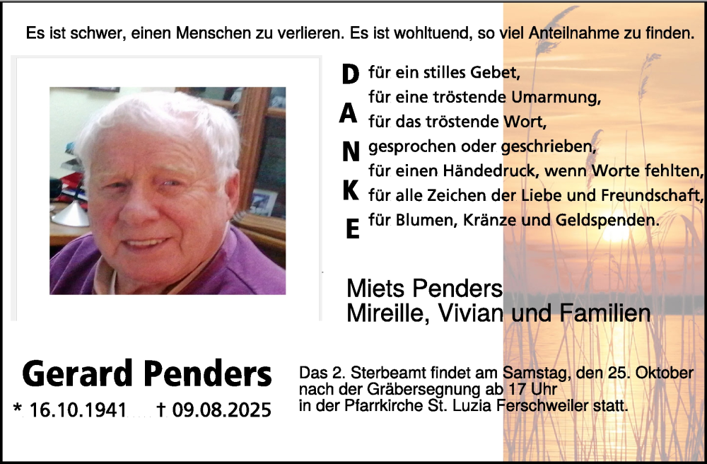 Hier finden Sie alle Traueranzeigen aus der Zeitung, die bisher für Gerard Penders erschienen sind. Weitere Traueranzeigen, die in der Zeitung erscheinen, werden hier ebenfalls aufgelistet
