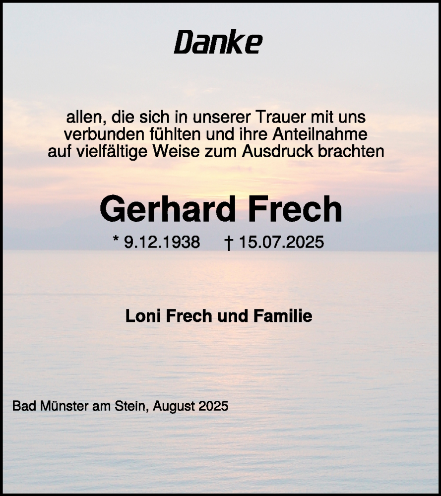 Hier finden Sie alle Traueranzeigen aus der Zeitung, die bisher für Gerhard Frech erschienen sind. Weitere Traueranzeigen, die in der Zeitung erscheinen, werden hier ebenfalls aufgelistet