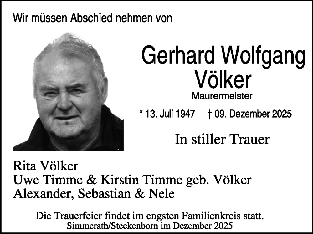 Hier finden Sie alle Traueranzeigen aus der Zeitung, die bisher für Gerhard Wolfgang Völker erschienen sind. Weitere Traueranzeigen, die in der Zeitung erscheinen, werden hier ebenfalls aufgelistet