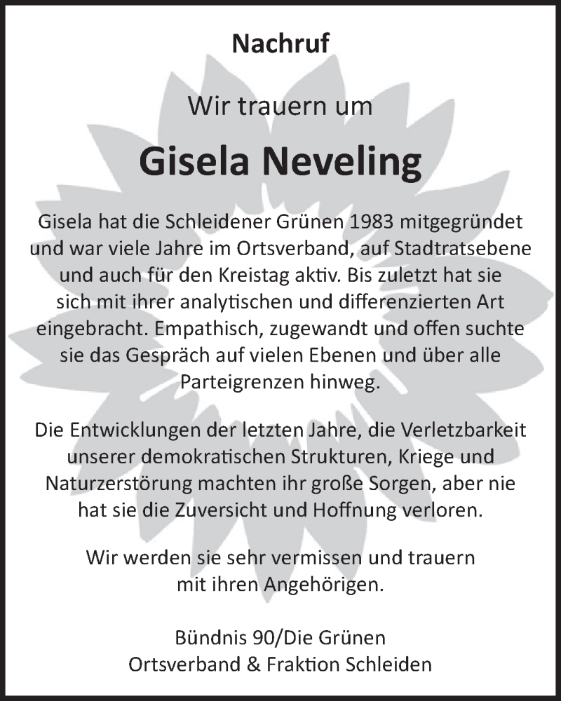Hier finden Sie alle Traueranzeigen aus der Zeitung, die bisher für Gisela Neveling erschienen sind. Weitere Traueranzeigen, die in der Zeitung erscheinen, werden hier ebenfalls aufgelistet