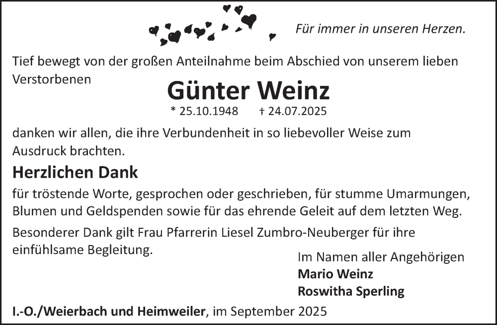 Hier finden Sie alle Traueranzeigen aus der Zeitung, die bisher für Günter Weinz erschienen sind. Weitere Traueranzeigen, die in der Zeitung erscheinen, werden hier ebenfalls aufgelistet