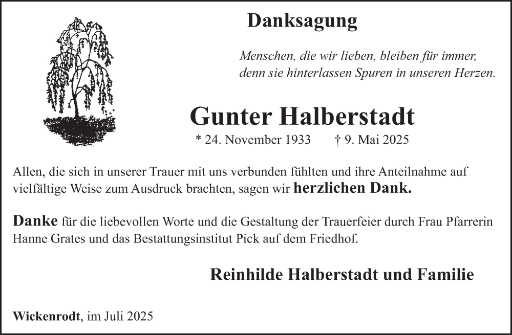 Hier finden Sie alle Traueranzeigen aus der Zeitung, die bisher für Gunter Halberstadt erschienen sind. Weitere Traueranzeigen, die in der Zeitung erscheinen, werden hier ebenfalls aufgelistet