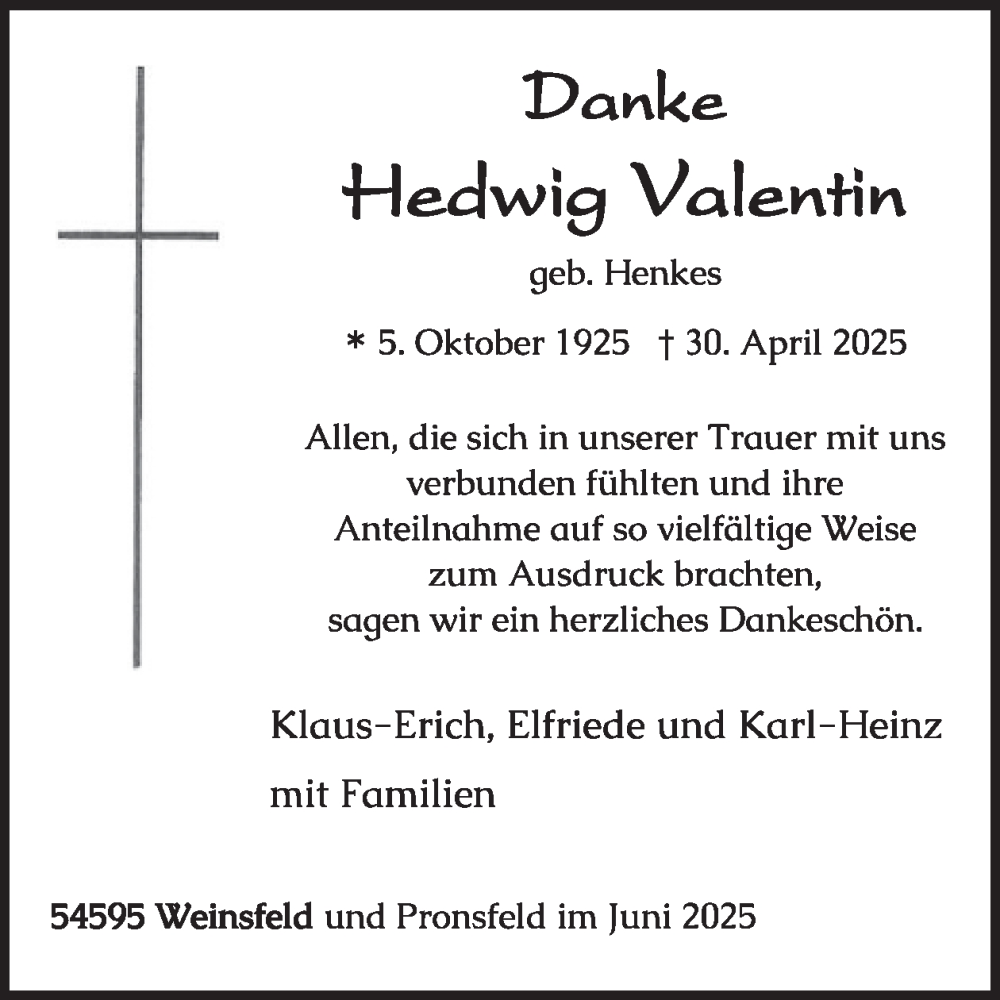 Hier finden Sie alle Traueranzeigen aus der Zeitung, die bisher für Hedwig Valentin erschienen sind. Weitere Traueranzeigen, die in der Zeitung erscheinen, werden hier ebenfalls aufgelistet