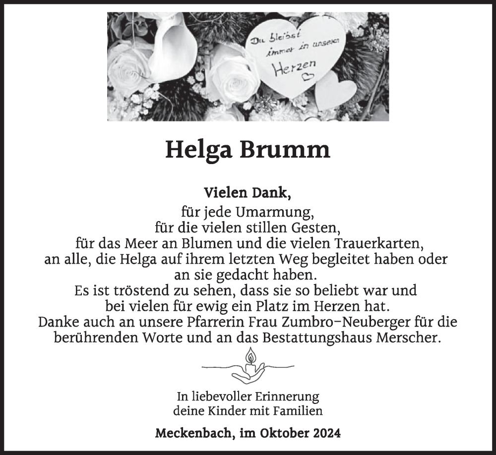 Hier finden Sie alle Traueranzeigen aus der Zeitung, die bisher für Helga Brumm erschienen sind. Weitere Traueranzeigen, die in der Zeitung erscheinen, werden hier ebenfalls aufgelistet