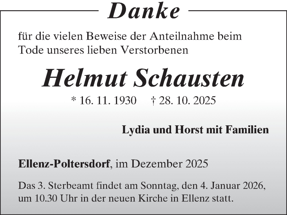 Hier finden Sie alle Traueranzeigen aus der Zeitung, die bisher für Helmut Schausten erschienen sind. Weitere Traueranzeigen, die in der Zeitung erscheinen, werden hier ebenfalls aufgelistet