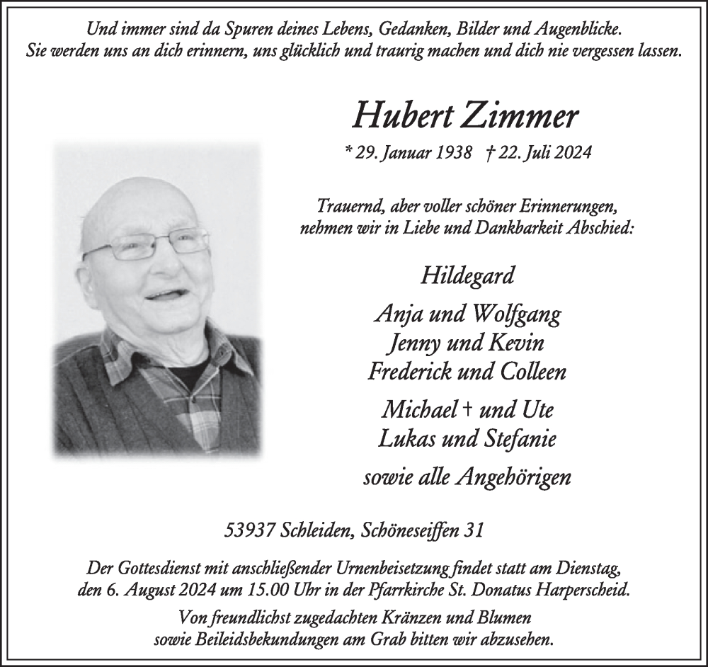 Hier finden Sie alle Traueranzeigen aus der Zeitung, die bisher für Hubert Zimmer erschienen sind. Weitere Traueranzeigen, die in der Zeitung erscheinen, werden hier ebenfalls aufgelistet