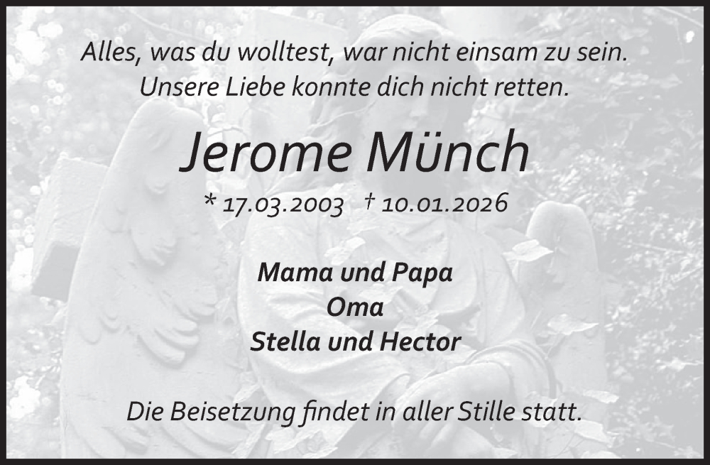 Hier finden Sie alle Traueranzeigen aus der Zeitung, die bisher für Jerome Münch erschienen sind. Weitere Traueranzeigen, die in der Zeitung erscheinen, werden hier ebenfalls aufgelistet
