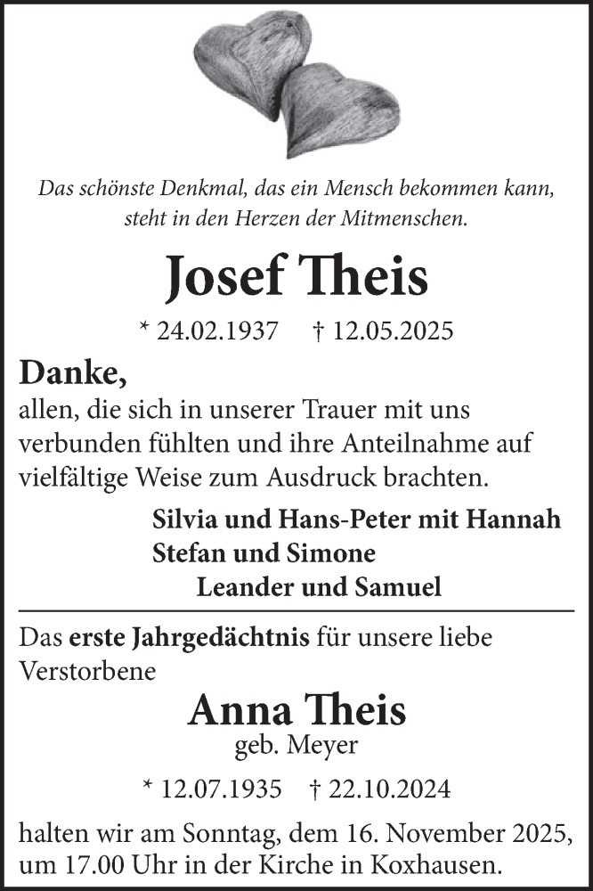 Hier finden Sie alle Traueranzeigen aus der Zeitung, die bisher für Josef Theis erschienen sind. Weitere Traueranzeigen, die in der Zeitung erscheinen, werden hier ebenfalls aufgelistet
