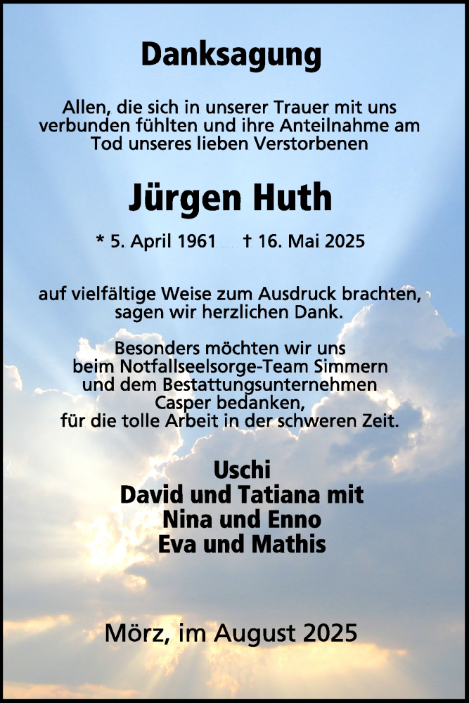 Hier finden Sie alle Traueranzeigen aus der Zeitung, die bisher für Jürgen Huth erschienen sind. Weitere Traueranzeigen, die in der Zeitung erscheinen, werden hier ebenfalls aufgelistet