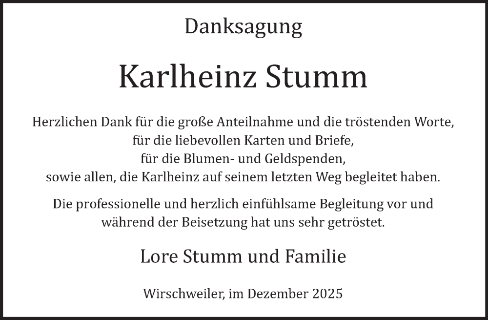Hier finden Sie alle Traueranzeigen aus der Zeitung, die bisher für Karlheinz Stumm erschienen sind. Weitere Traueranzeigen, die in der Zeitung erscheinen, werden hier ebenfalls aufgelistet