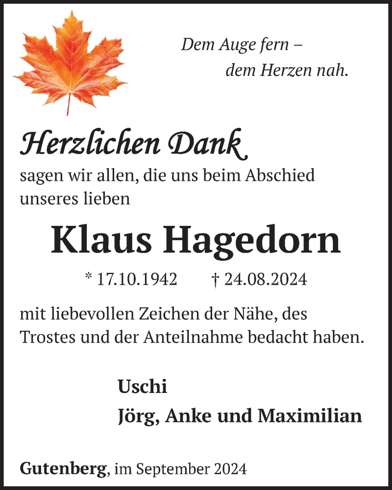 Hier finden Sie alle Traueranzeigen aus der Zeitung, die bisher für Klaus Hagedorn erschienen sind. Weitere Traueranzeigen, die in der Zeitung erscheinen, werden hier ebenfalls aufgelistet