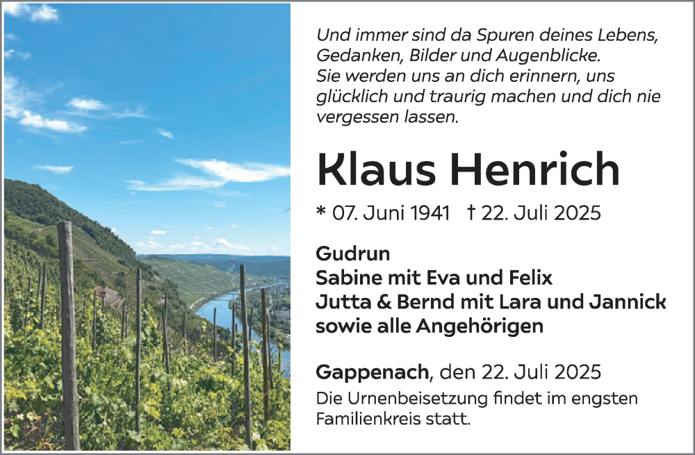 Hier finden Sie alle Traueranzeigen aus der Zeitung, die bisher für Klaus Henrich erschienen sind. Weitere Traueranzeigen, die in der Zeitung erscheinen, werden hier ebenfalls aufgelistet