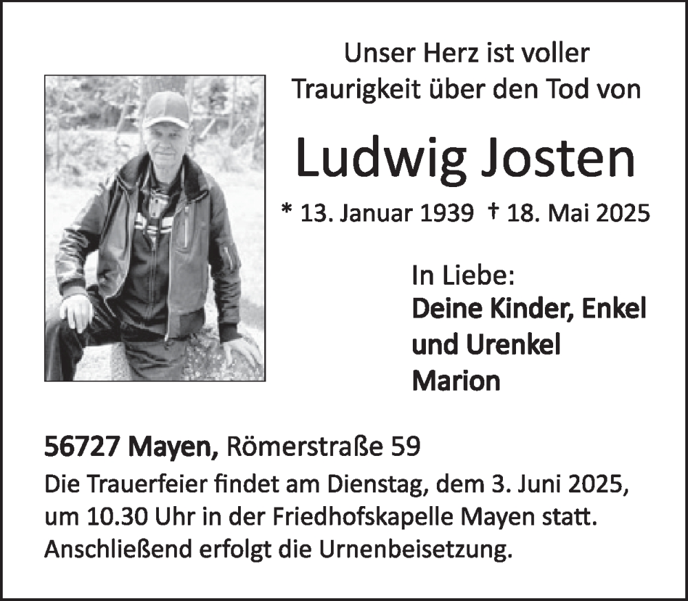 Hier finden Sie alle Traueranzeigen aus der Zeitung, die bisher für Ludwig Josten erschienen sind. Weitere Traueranzeigen, die in der Zeitung erscheinen, werden hier ebenfalls aufgelistet