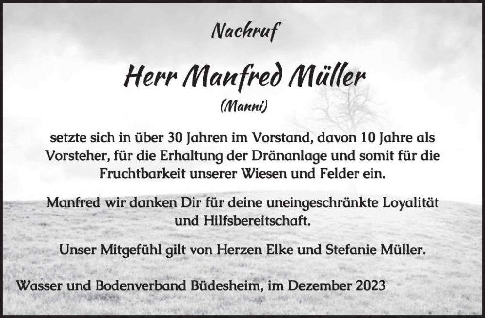 Hier finden Sie alle Traueranzeigen aus der Zeitung, die bisher für Manfred Müller erschienen sind. Weitere Traueranzeigen, die in der Zeitung erscheinen, werden hier ebenfalls aufgelistet
