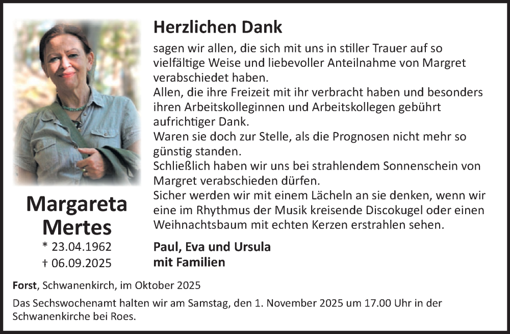 Hier finden Sie alle Traueranzeigen aus der Zeitung, die bisher für Margret Mertes erschienen sind. Weitere Traueranzeigen, die in der Zeitung erscheinen, werden hier ebenfalls aufgelistet
