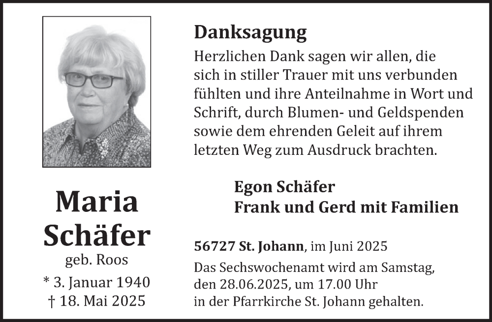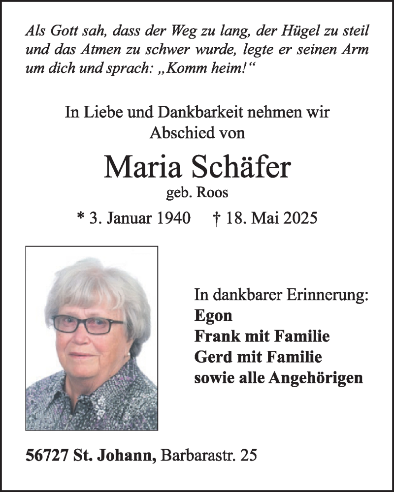 Hier finden Sie alle Traueranzeigen aus der Zeitung, die bisher für Maria Schäfer erschienen sind. Weitere Traueranzeigen, die in der Zeitung erscheinen, werden hier ebenfalls aufgelistet