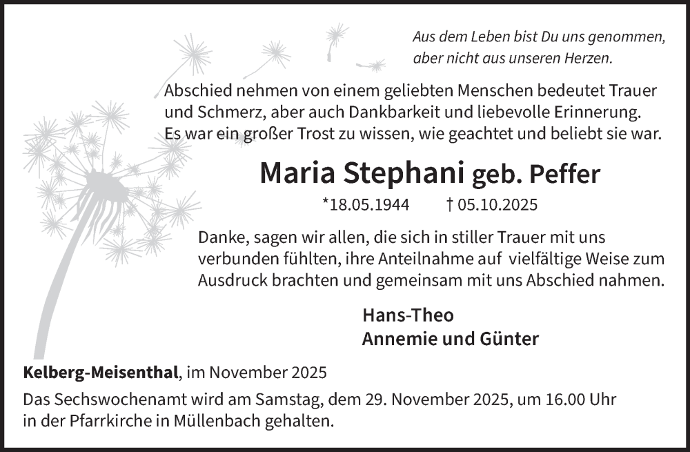 Hier finden Sie alle Traueranzeigen aus der Zeitung, die bisher für Maria Stephani erschienen sind. Weitere Traueranzeigen, die in der Zeitung erscheinen, werden hier ebenfalls aufgelistet