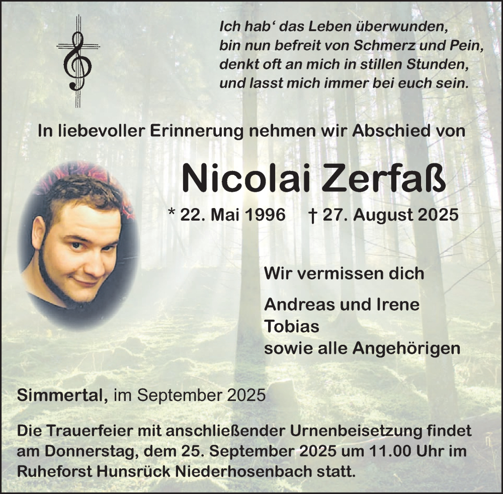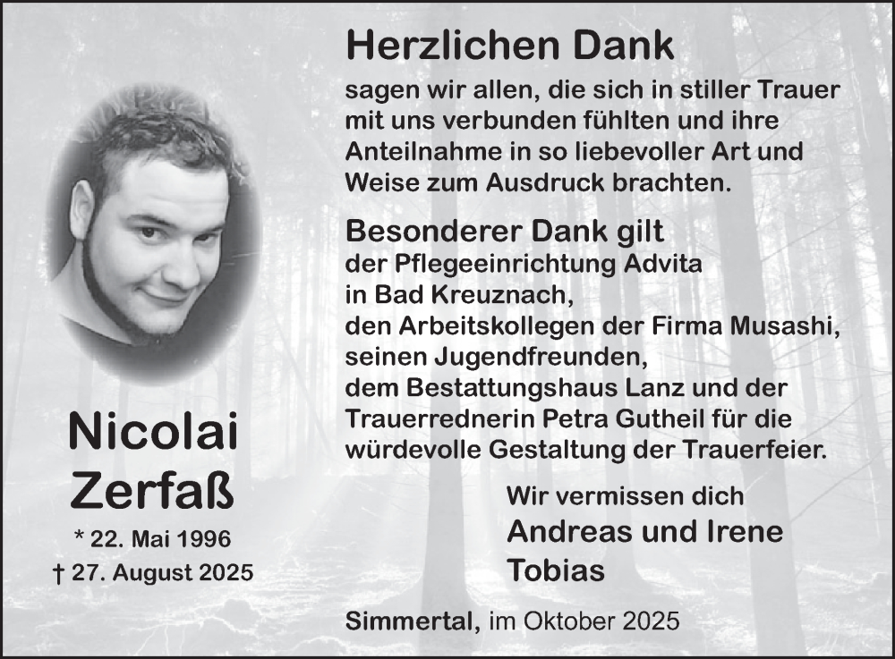 Hier finden Sie alle Traueranzeigen aus der Zeitung, die bisher für Nicolai Zerfaß erschienen sind. Weitere Traueranzeigen, die in der Zeitung erscheinen, werden hier ebenfalls aufgelistet