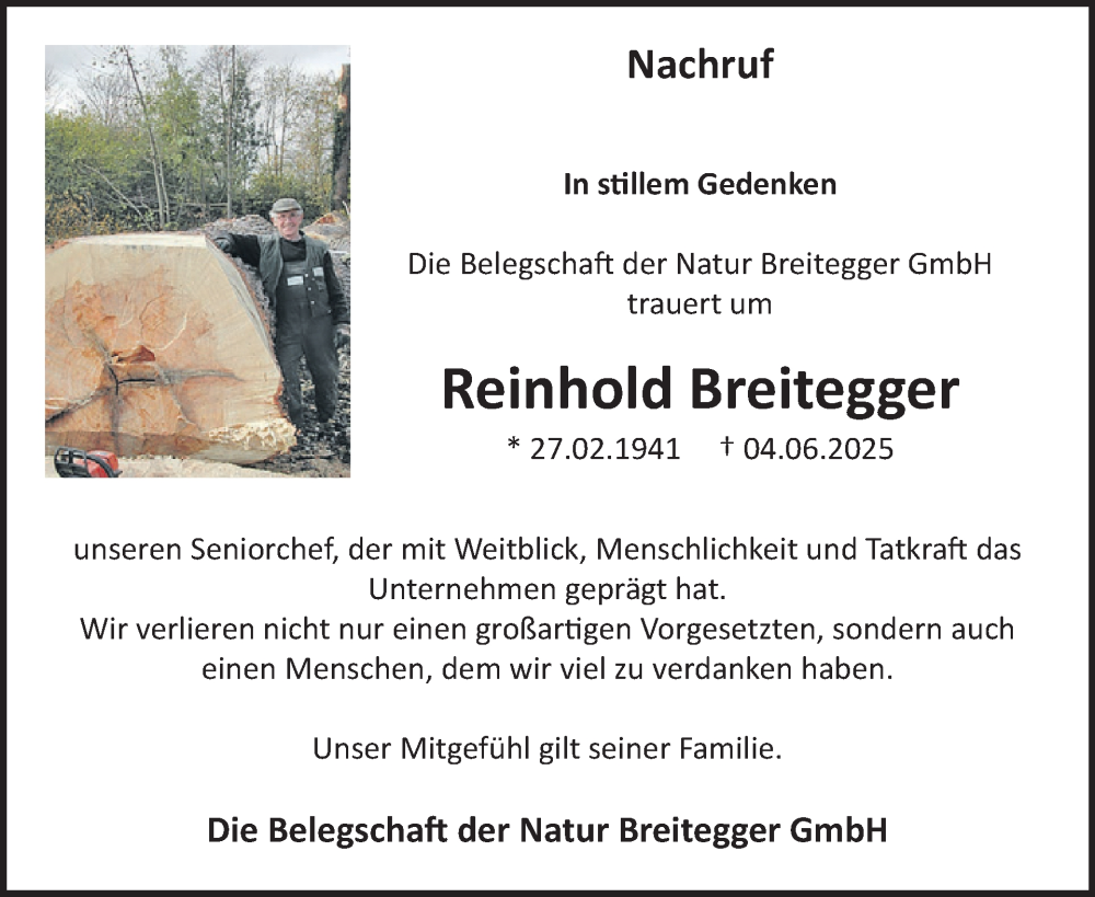 Hier finden Sie alle Traueranzeigen aus der Zeitung, die bisher für Reinhold Breitegger erschienen sind. Weitere Traueranzeigen, die in der Zeitung erscheinen, werden hier ebenfalls aufgelistet