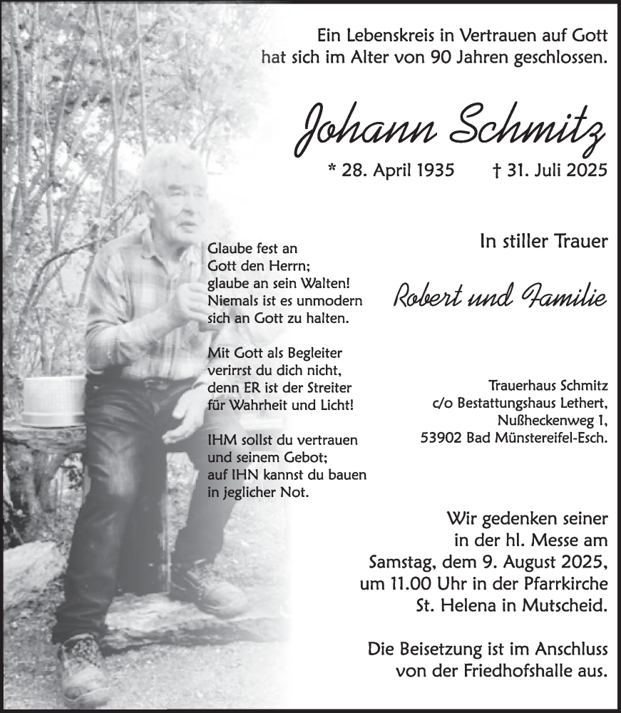 Hier finden Sie alle Traueranzeigen aus der Zeitung, die bisher für Robert Schmitz erschienen sind. Weitere Traueranzeigen, die in der Zeitung erscheinen, werden hier ebenfalls aufgelistet