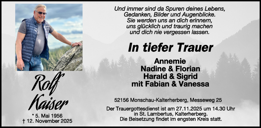 Hier finden Sie alle Traueranzeigen aus der Zeitung, die bisher für Rolf Kaiser erschienen sind. Weitere Traueranzeigen, die in der Zeitung erscheinen, werden hier ebenfalls aufgelistet