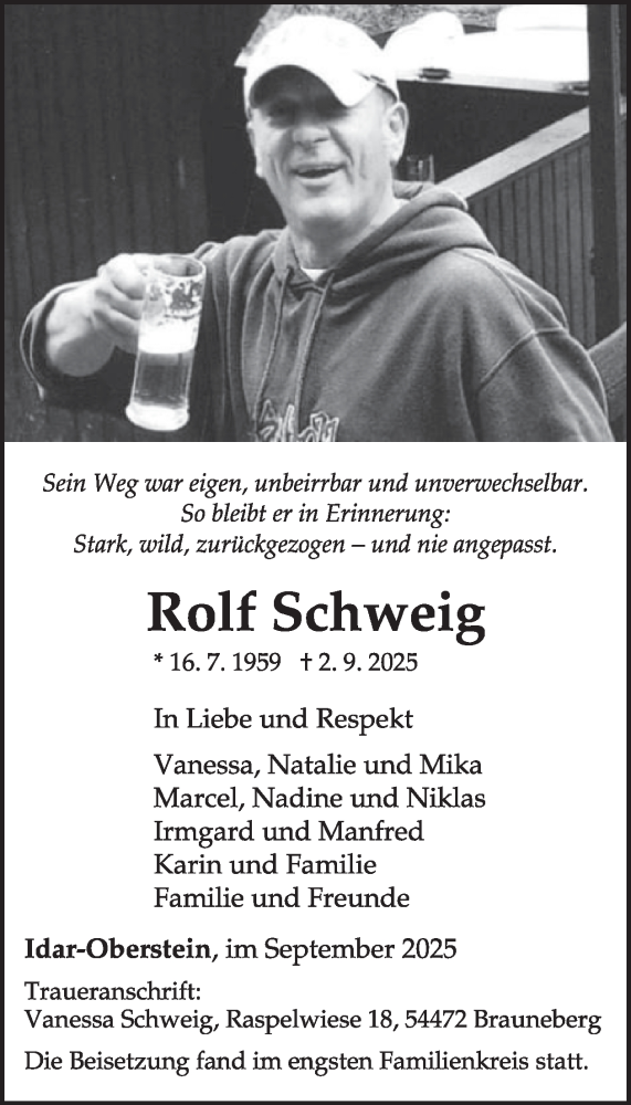 Hier finden Sie alle Traueranzeigen aus der Zeitung, die bisher für Rolf Schweig erschienen sind. Weitere Traueranzeigen, die in der Zeitung erscheinen, werden hier ebenfalls aufgelistet
