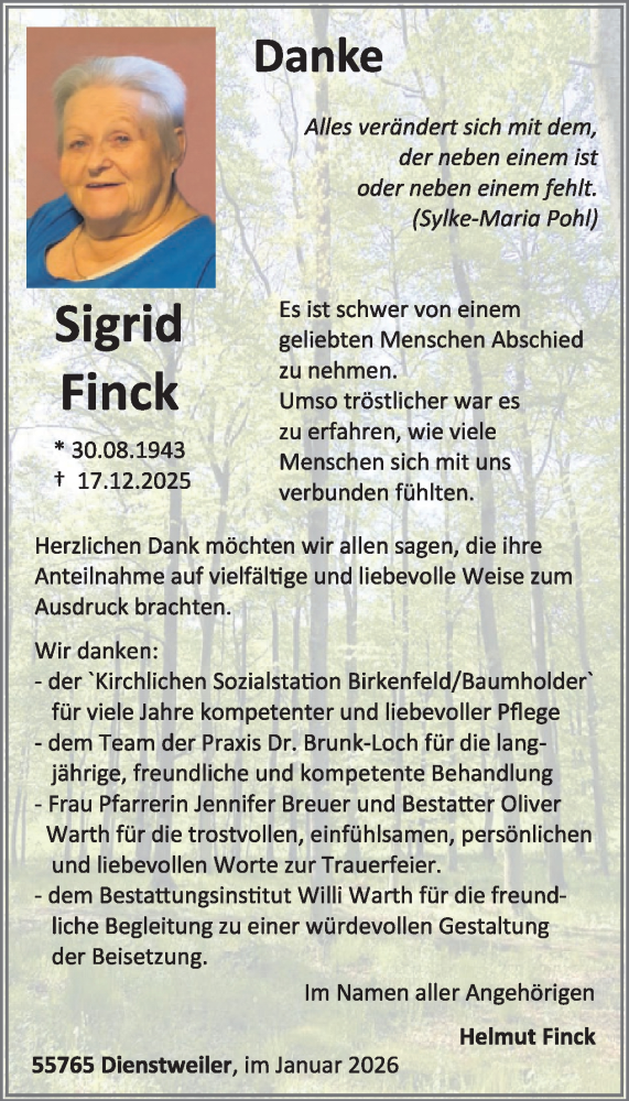 Hier finden Sie alle Traueranzeigen aus der Zeitung, die bisher für Sigrid Finck erschienen sind. Weitere Traueranzeigen, die in der Zeitung erscheinen, werden hier ebenfalls aufgelistet