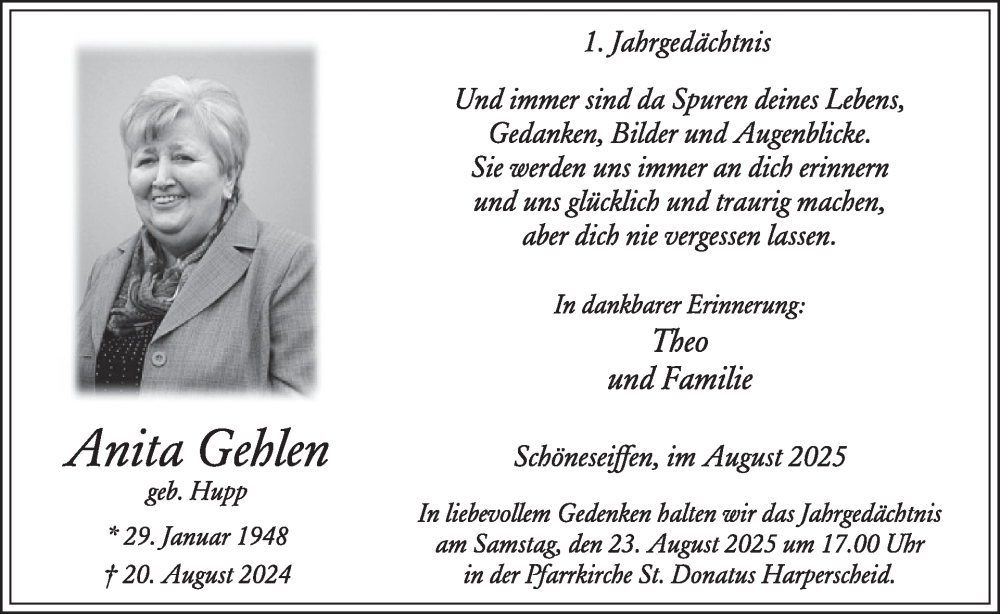 Hier finden Sie alle Traueranzeigen aus der Zeitung, die bisher für Theo Gehlen erschienen sind. Weitere Traueranzeigen, die in der Zeitung erscheinen, werden hier ebenfalls aufgelistet