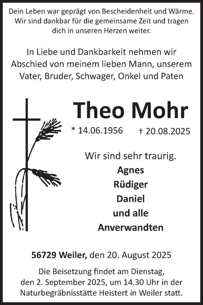 Hier finden Sie alle Traueranzeigen aus der Zeitung, die bisher für Theo Mohr erschienen sind. Weitere Traueranzeigen, die in der Zeitung erscheinen, werden hier ebenfalls aufgelistet