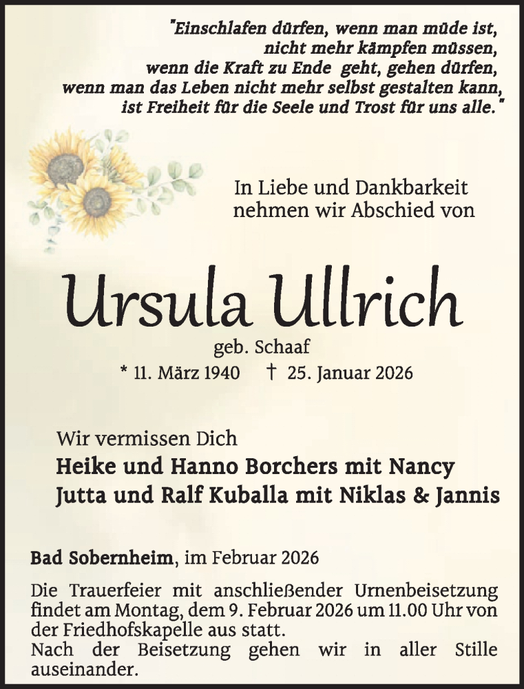 Hier finden Sie alle Traueranzeigen aus der Zeitung, die bisher für Ursula Ullrich erschienen sind. Weitere Traueranzeigen, die in der Zeitung erscheinen, werden hier ebenfalls aufgelistet