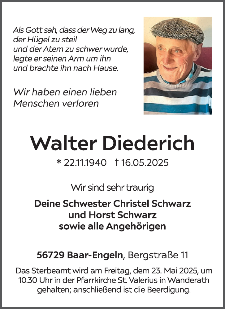 Hier finden Sie alle Traueranzeigen aus der Zeitung, die bisher für Walter Diederich erschienen sind. Weitere Traueranzeigen, die in der Zeitung erscheinen, werden hier ebenfalls aufgelistet