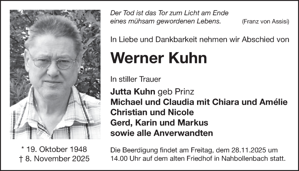 Hier finden Sie alle Traueranzeigen aus der Zeitung, die bisher für Werner Kuhn erschienen sind. Weitere Traueranzeigen, die in der Zeitung erscheinen, werden hier ebenfalls aufgelistet