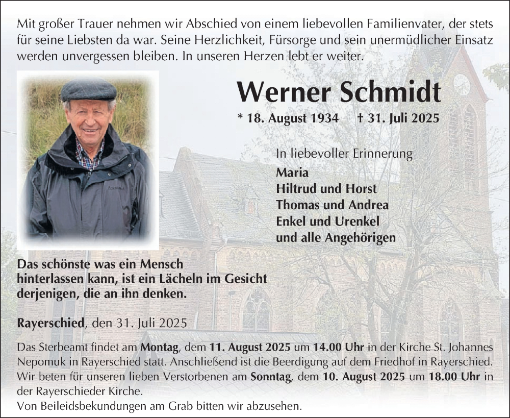 Hier finden Sie alle Traueranzeigen aus der Zeitung, die bisher für Werner Schmidt erschienen sind. Weitere Traueranzeigen, die in der Zeitung erscheinen, werden hier ebenfalls aufgelistet