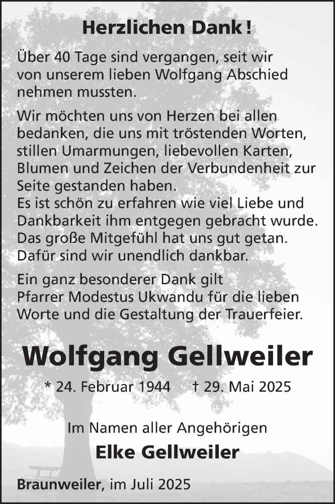 Hier finden Sie alle Traueranzeigen aus der Zeitung, die bisher für Wolfgang Gellweiler erschienen sind. Weitere Traueranzeigen, die in der Zeitung erscheinen, werden hier ebenfalls aufgelistet